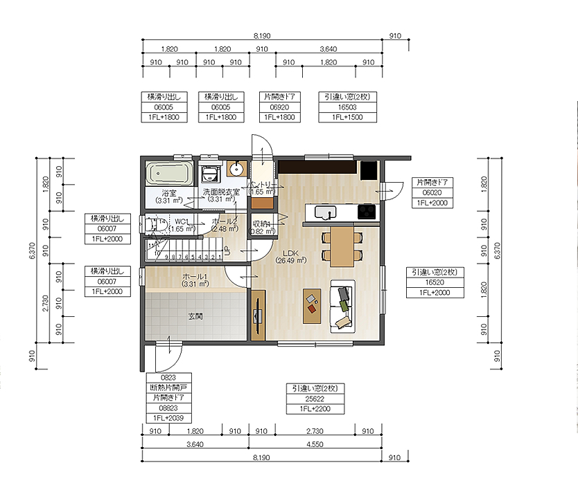 基本的な仕様が決まっているとはいえ、間取りをお客様が決めることができます。